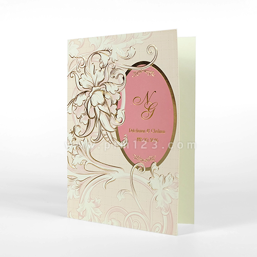การ์ดแต่งงานแนวตั้งแบบพับ มีแผ่นรองด้านใน ลายดอกไม้พร้อมด้วยโทนสีอ่อน น่ารักสวยงามประทับใจ พิมพ์ง่าย พิมพ์ถูก พิมพ์ดี PIM123