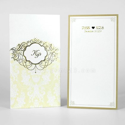 การ์ดแต่งงานสีพาสเทลสุดน่ารัก ตัวการ์ดเป็นแนวตั้ง ดูสวยงามสะดุดตาด้วยลวดลายบนซอง ราคาถูก พิมพ์ดี