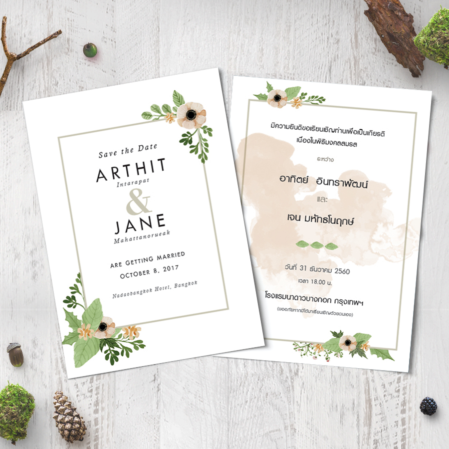 การ์ดแต่งงานสไตล์เรียบง่ายโดนใจ ใช้เทคนิคการพิมพ์ 4 สีด้วยหมึกคุณภาพสูง ในราคาย่อมเยา แต่คุณภาพสูงเกิน
